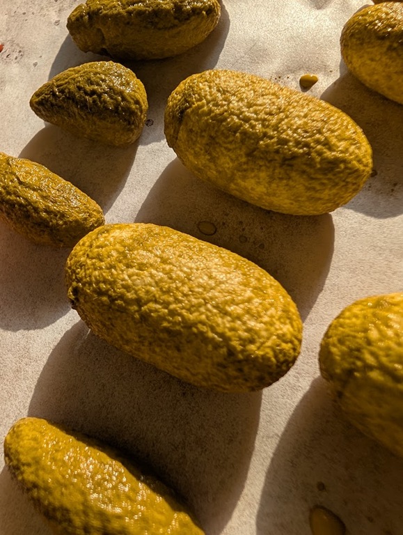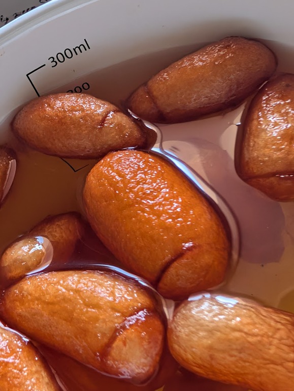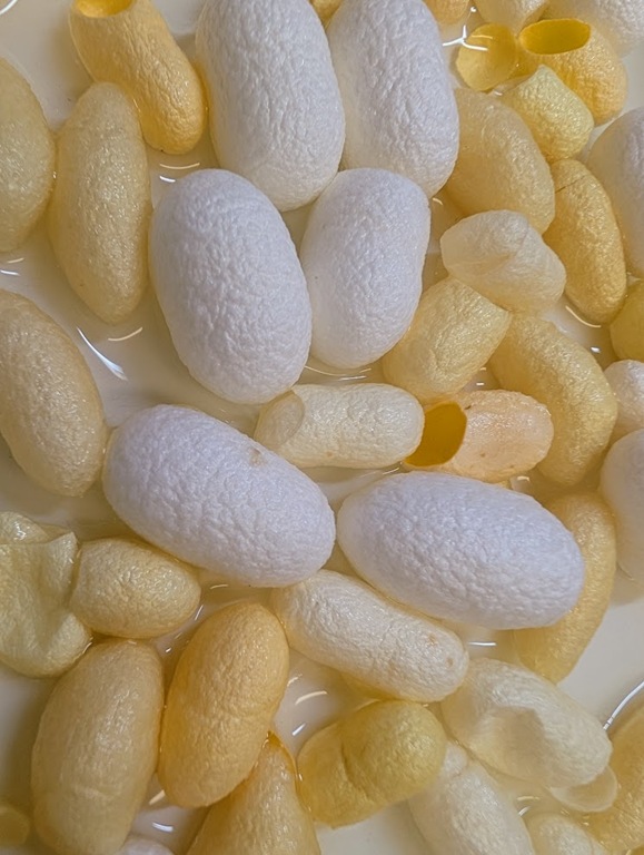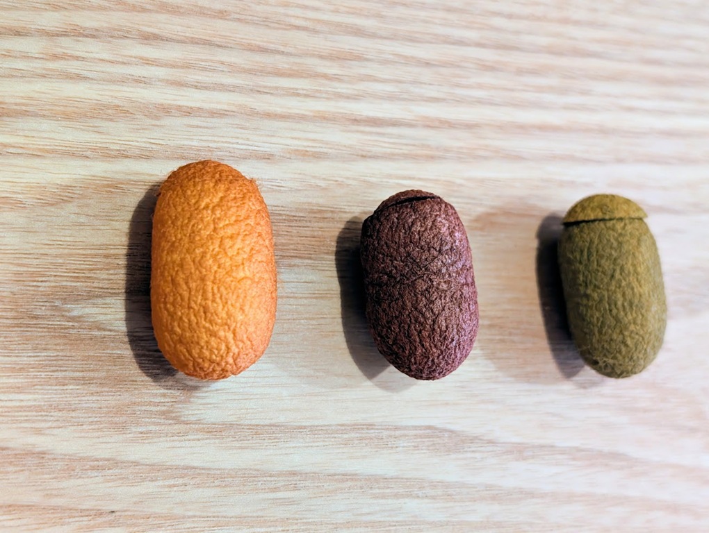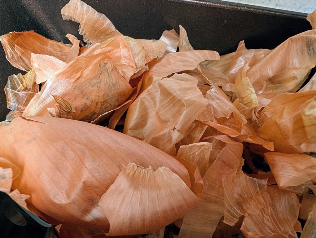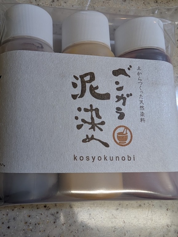 左から玉ねぎ染、ベンガラ染(紫陽花)