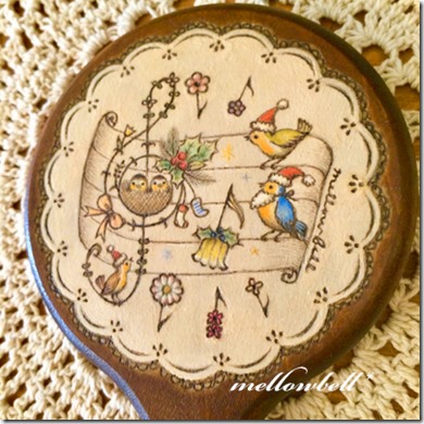 作品は、木にウッドバーニング(焼絵)